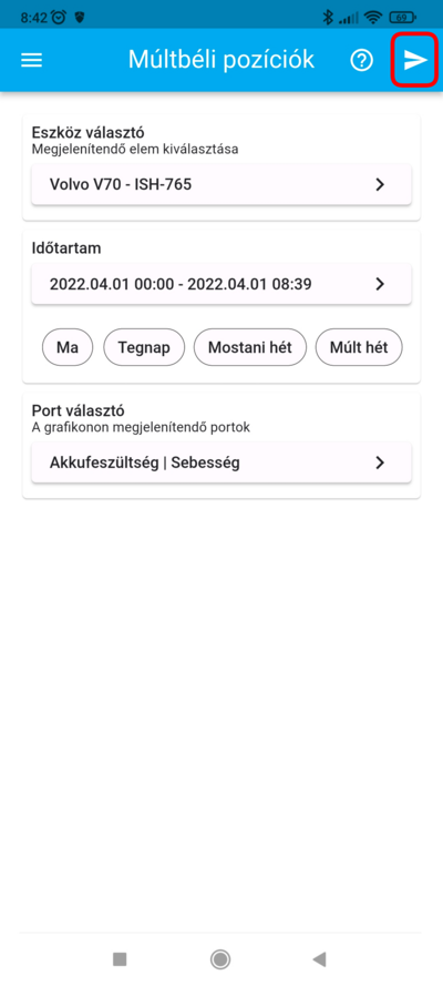 A paraméterek beállítását követően a képernyő jobb felső sarkában elhelyezett nyíllal jelölt gombra koppintva futtathatod a lekérdezést.
