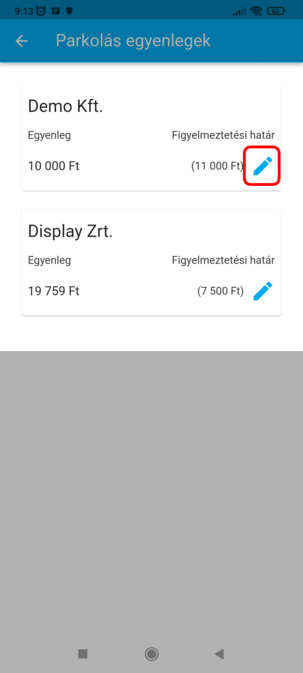 A beállítást érdemes akkora összegre beállítani, hogy az értesítési határ elérésekor még az összes járművedre tudj akár egyidejűleg is parkolást indítani.