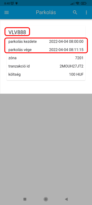 A kereső felüeletén a listában rendszámon kívül státusz alapján rendezhetsz (folyamatban lévő, lezárt, öszes), és időpont alapján is kereshetsz a parkolások között.
